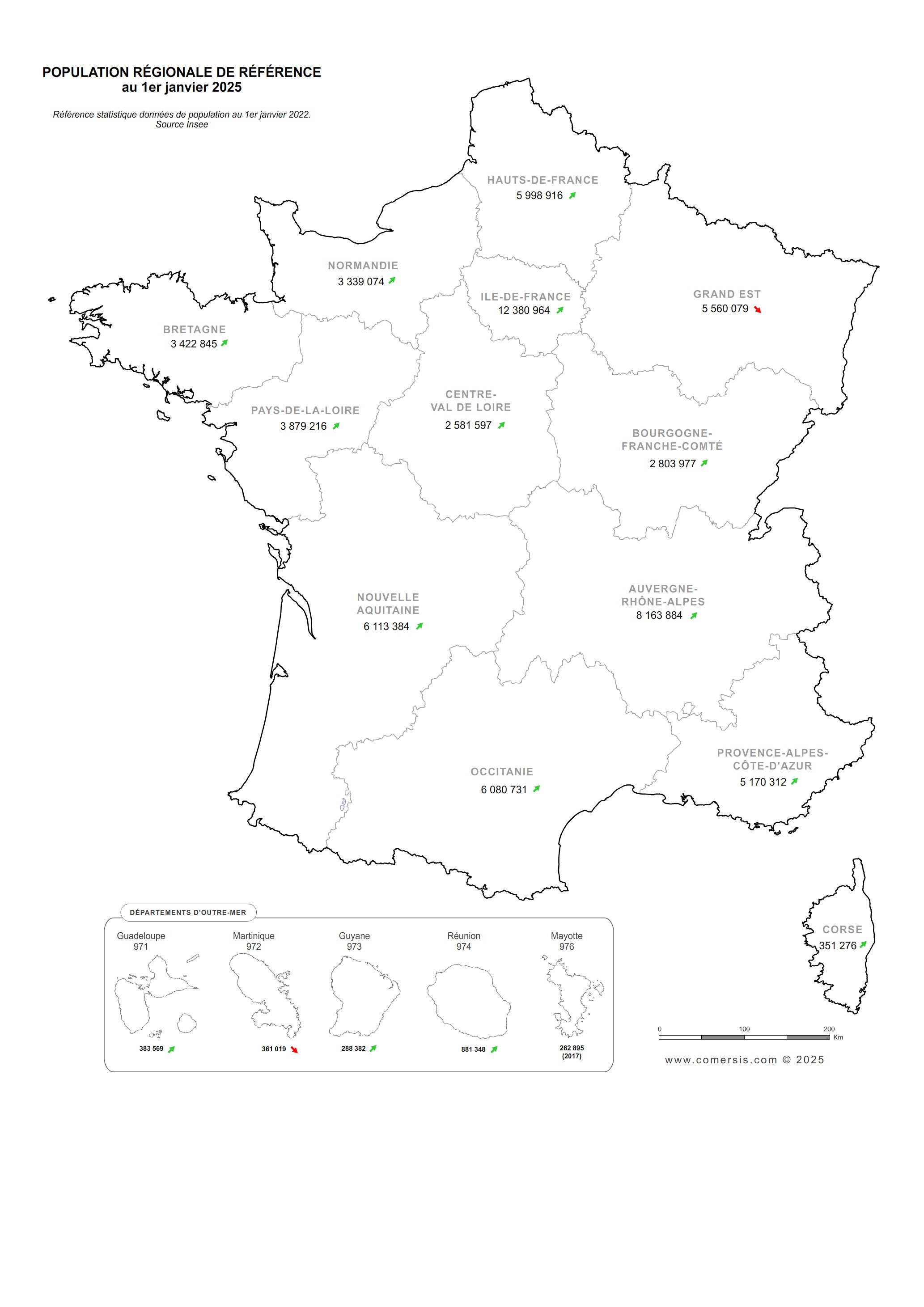 Vous trouverez ci-dessous les cartes 2025 de la population de référence par région.