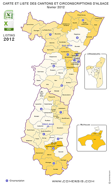 Carte administrative d'Alsace pour l'infographie, l'édition et l'impression grand format.