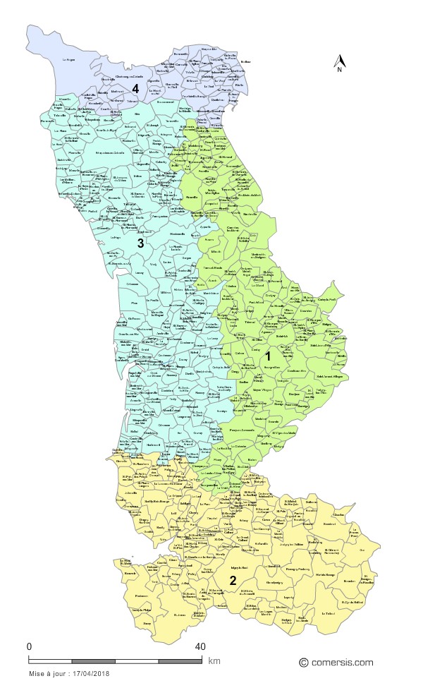 regroupe les contours des 4 circonscriptions avec leur numéro.