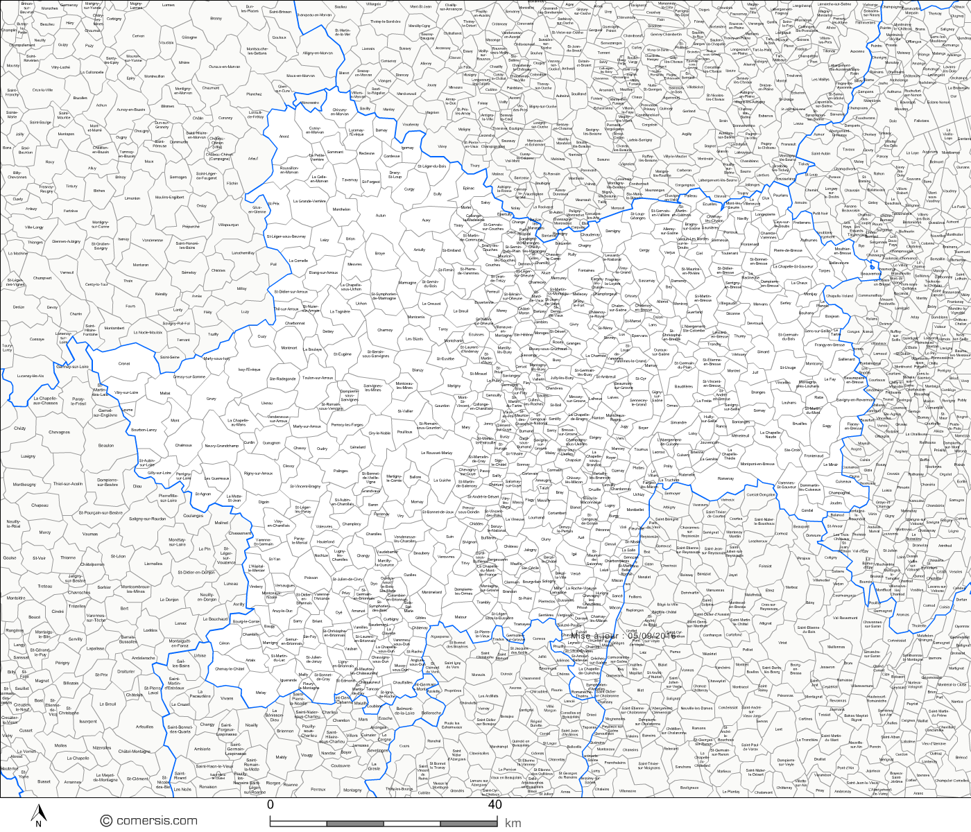 Carte personnalisable des communes de Saône-et-Loire et des communes limitrophes, pour l'infographie, l'édition et l'impression grand format.