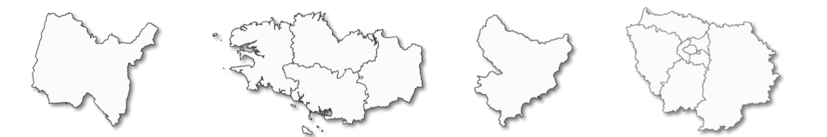 Administrative maps of France for computer graphics, publishing and large format printing;