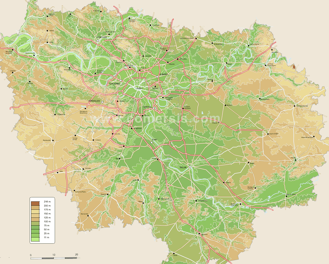 Carte du relief d'Île-de-France pour l'infographie, l'édition et l'impression grand format.