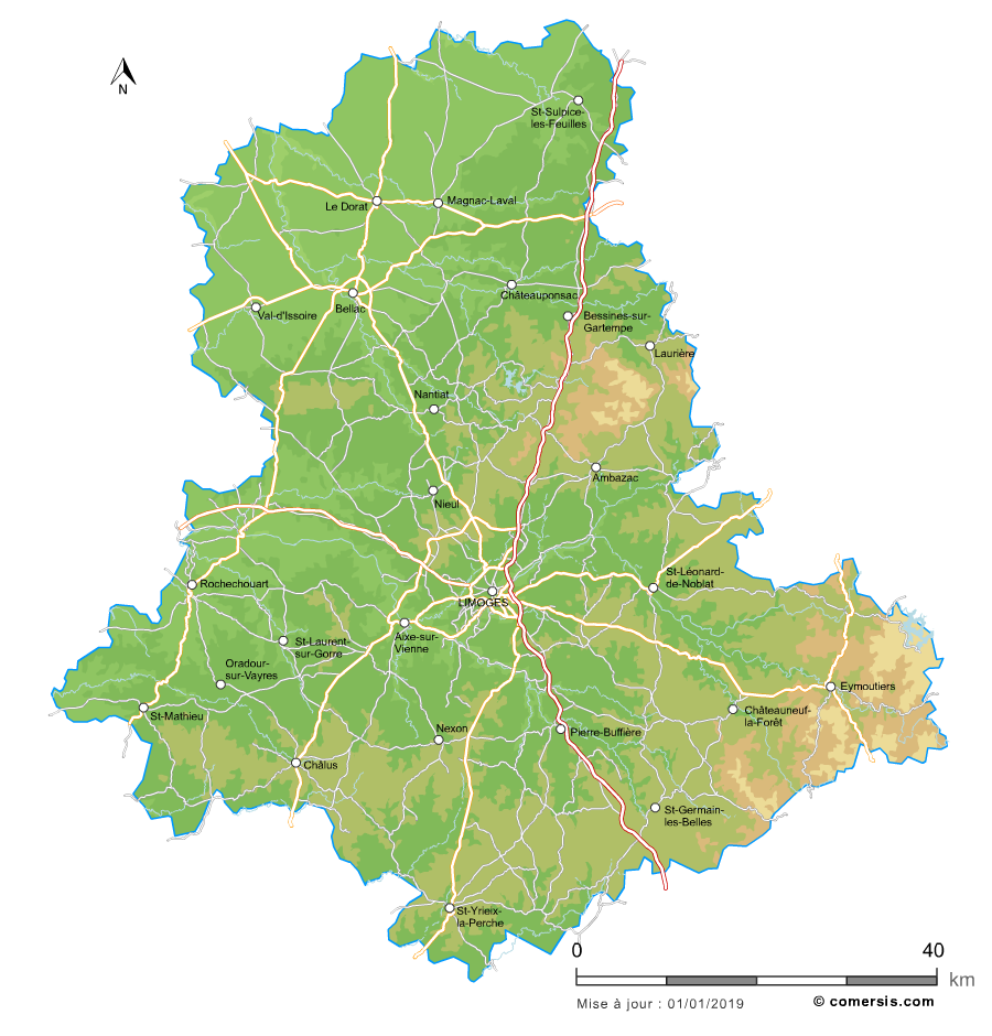 Carte vectorielle du relief de la Haute-Vienne pour l'infographie, l'édition et l'impression grand format.