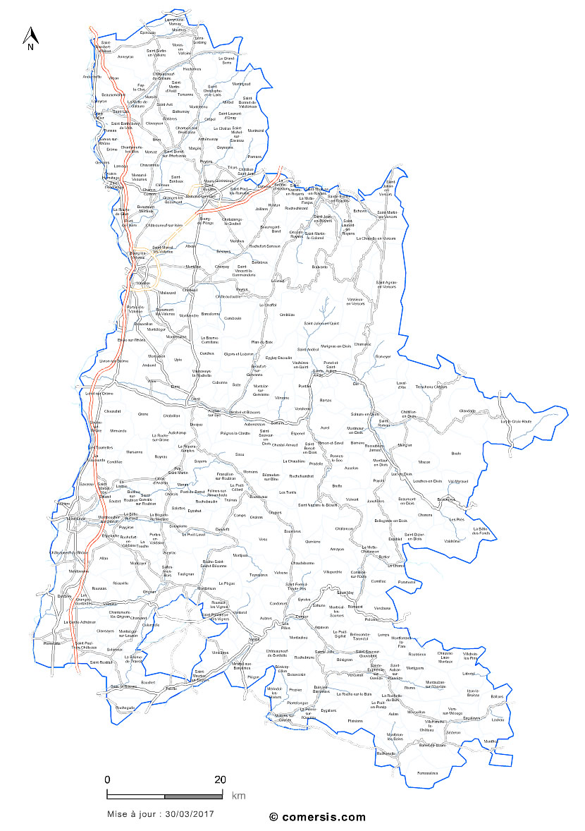 Carte vectorielle des routes de la Drôme pour l'infographie, l'édition et l'impression grand format.