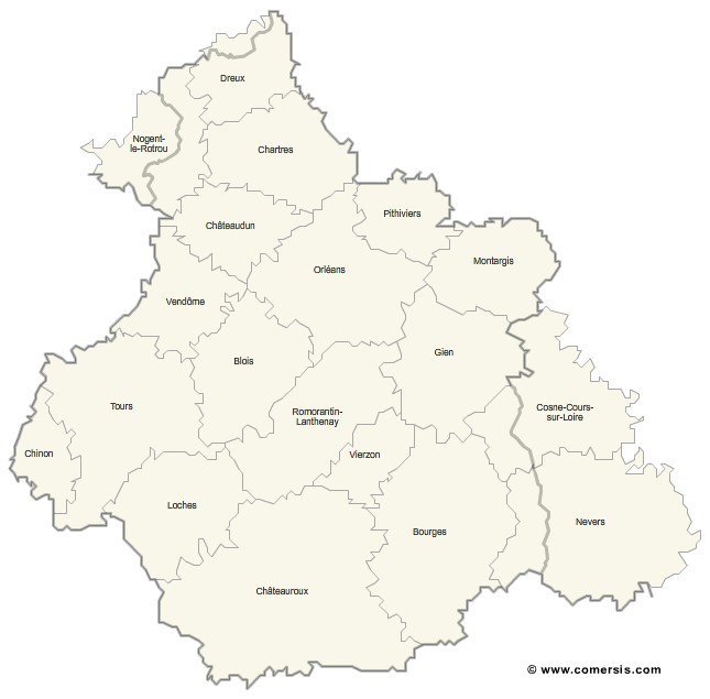 Carte des zones d'emploi du Centre-Val de Loire pour l'infographie, l'édition et l'impression grand format.