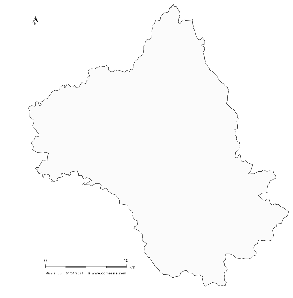 Fond de carte modifiable de l' Aveyron gratuit avec chef-lieu de département :