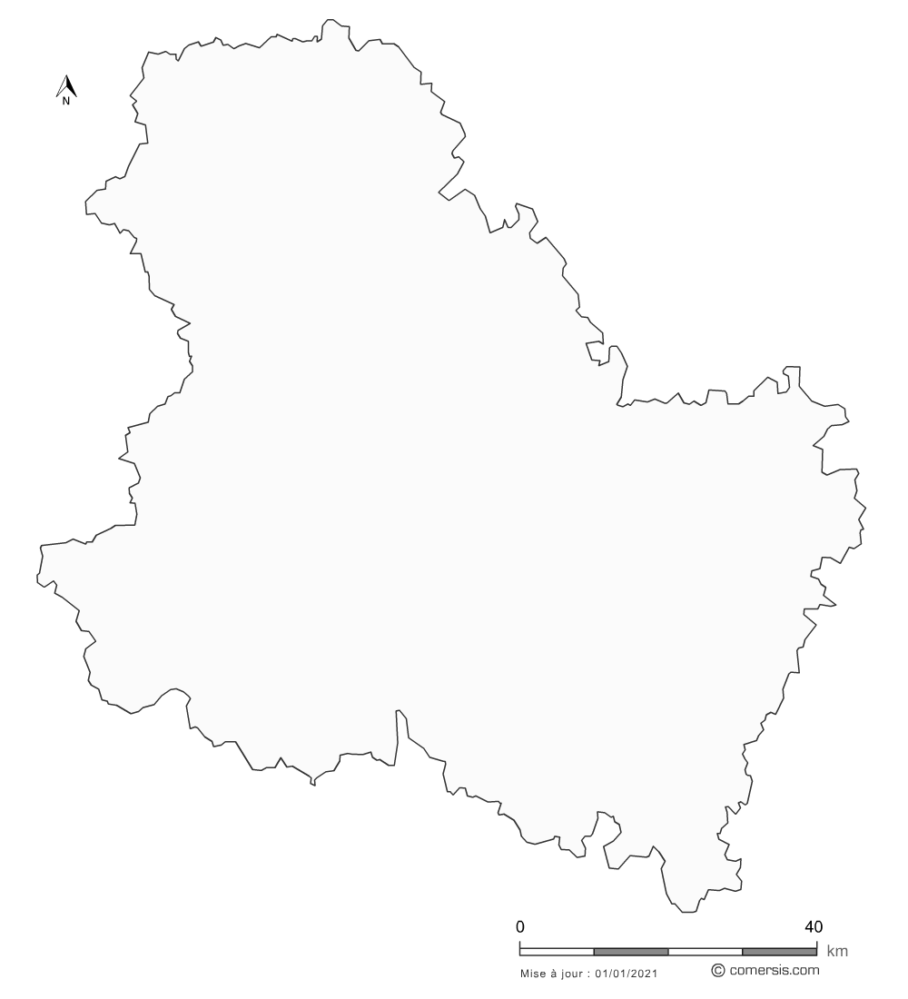Fond de carte modifiable de l' Yonne gratuit avec chef-lieu de département :
